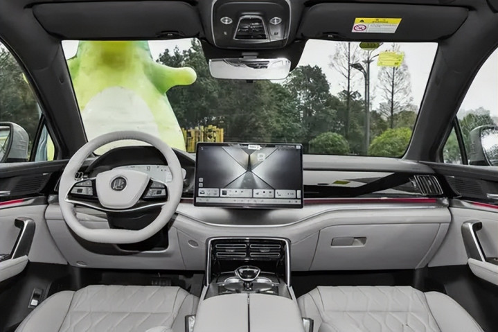 进入车内,两车的风格差异依然鲜明。唐DM-i的中控台布局采用了环抱式对称设计,大面积软性材料覆盖,手能触及的地方质感都不错,木纹和镀铬饰条的点缀让车厢多了几分温暖气息。车内配色以黑、棕为主,视觉上比较稳重。最引人注目的无疑是那块15.6英寸的可旋转中控屏,这是比亚迪的标志性设计。屏幕分辨率达到1080P,UI界面清晰,系统运行流畅,车机搭载DiLink4.0系统,应用生态丰富,不仅可以内置导航、音乐,还能下载视频软件,甚至打游戏。语音识别支持多轮对话和连续指令,实用性强。